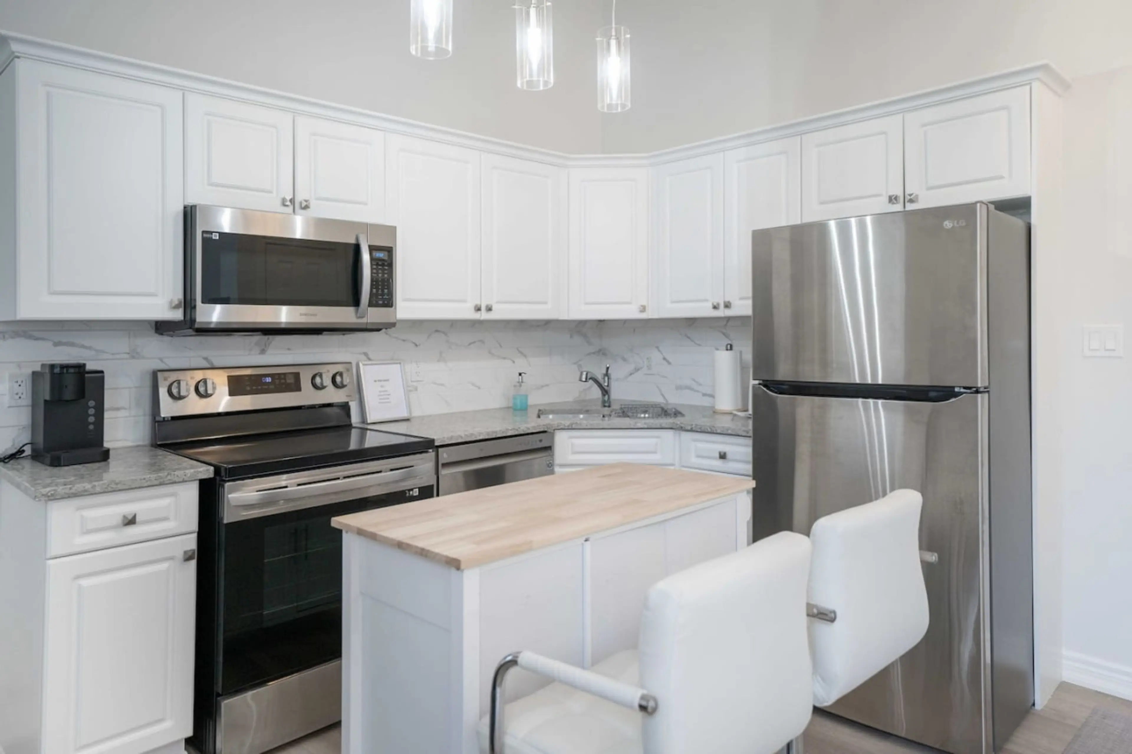 This newly renovated spacious second floor end unit is available for your stay. Located in the heart of Niagara Falls - a short 2 minute drive or 12-15 minute walk to Fallsview or any other attraction the Falls has to offer. Other features include: 2 spacious bedrooms with wall mounted TV’s, High S...